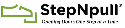 The StepNpull foot operated door pull mounts on any commercial latch-less wood or metal door, and gives the user the option of pulling the door open with their foot instead of the door handle. With StepNpull, the weight of the door is not a factor. If an interior door closer resistance is adjusted to the ADA standard of 5 pounds or less, then the user will be able to easily open the door with their foot using StepNpull.